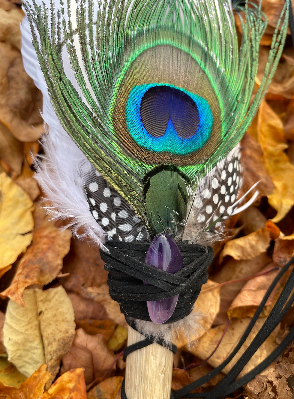 Native American Feather Smudge Fan with Amethyst Crystal